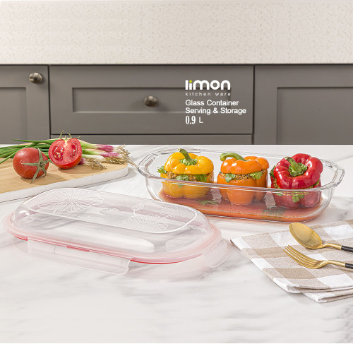 ظرف شیشه ای مستطیل درب دار لیمون 580 میلی لیتریناموجود