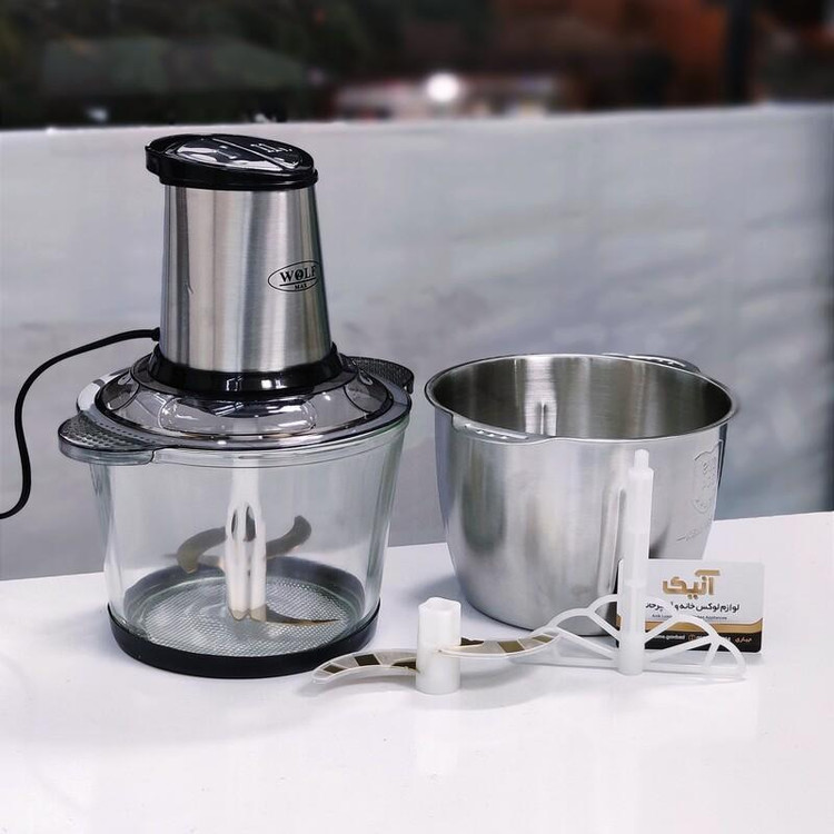 خردکن دو کاسه سه لیتری وولف دو تا کاسه سه لیتری پیرکس و استیل تیغه چهار عددی تیتانیوم یک تیغه اضافی کاردک و همزن تخم مرغ ارسال رایگان به سراسر کشور