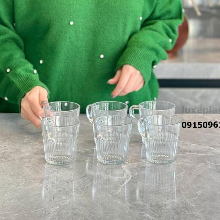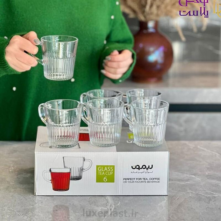 لیوان چای خوری شیشه ای شیاردار برند لیمون