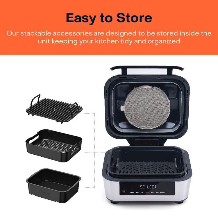 دماسنج هوشمند با قابلیت تنظیم میزان مغزپخت شدن غذا، صفحه گریل حرفه ای، سبد فاقد مواد سمی و سرطان زا و دارای استاندار PFOA free و BPA free، قابلیت شستشو در ماشین ظرفشویی، سیستم چرخش معکوس