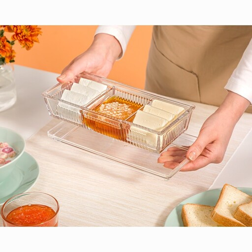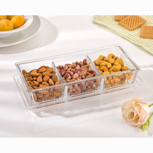 ليمون ظرف شيشه اي سه خانه دربدار سري استريپ اردو خوری شیشه ای با درب اکرولیک طراحی مدرن دارای سه بخش مجزا مناسب برای سرو صبحانه خشکبار و …