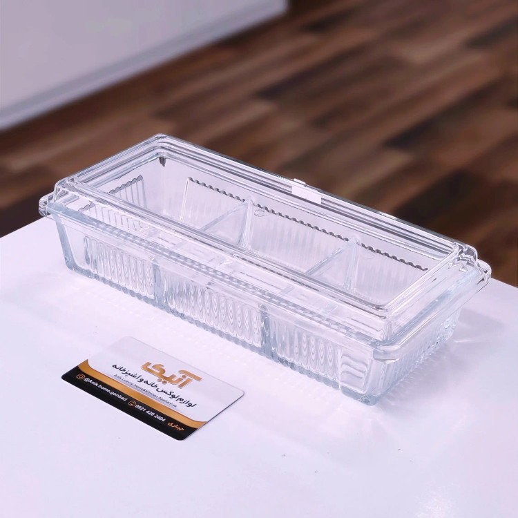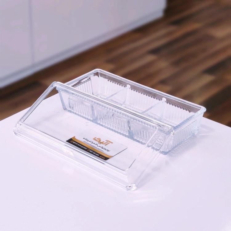 اردو خوری لیمون مدل سه خانه شیار دار درب اکرولیک با یک طراحی مدرن و دارای سه بخش مجزا ،جنس اردو خوری شیشه ای است و جنس درب آن از اکرولیک است. این محصول مناسب برای سرو پنیر،کره،عسل،چاشنی ها،آجیل و ...